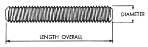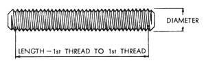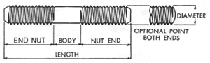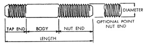 studs have a short thread on one end, called the tap end which is threaded to a Class NC5 or Class UNRC-3A fit. This end is for screwing into a tapped hole. The other or nut end is threaded with a Class UNRC-2A fit. Length of the stud is measured overall. The tap end has a chamfered